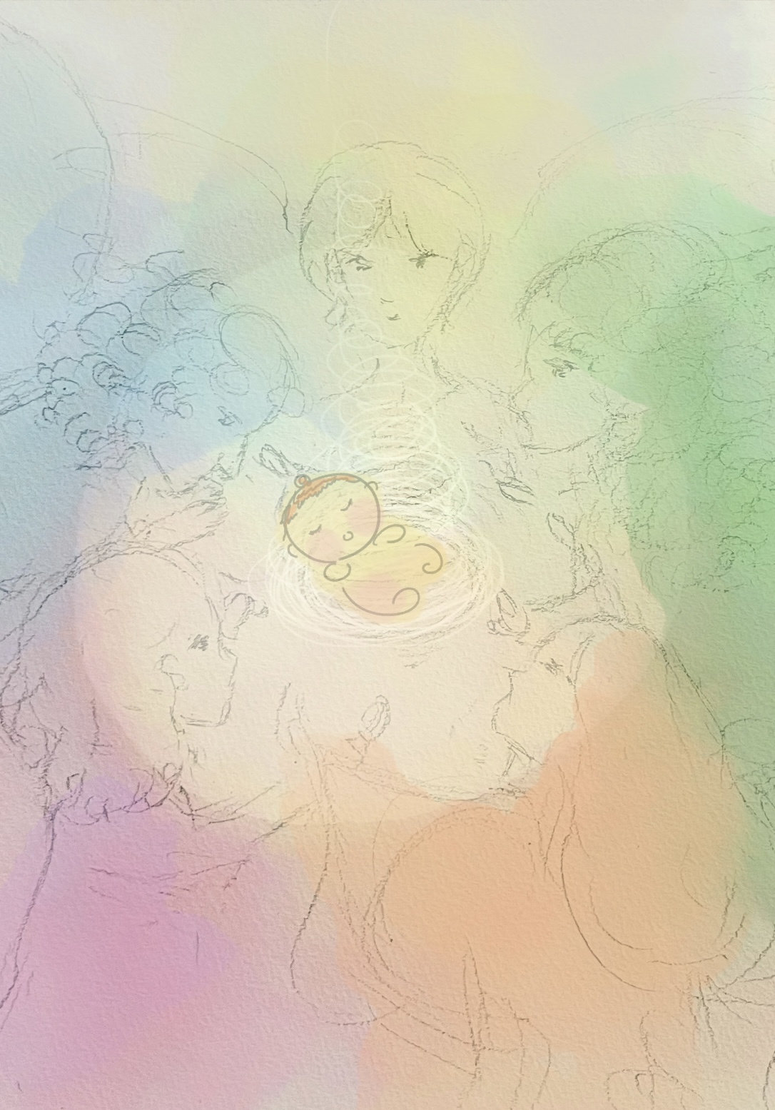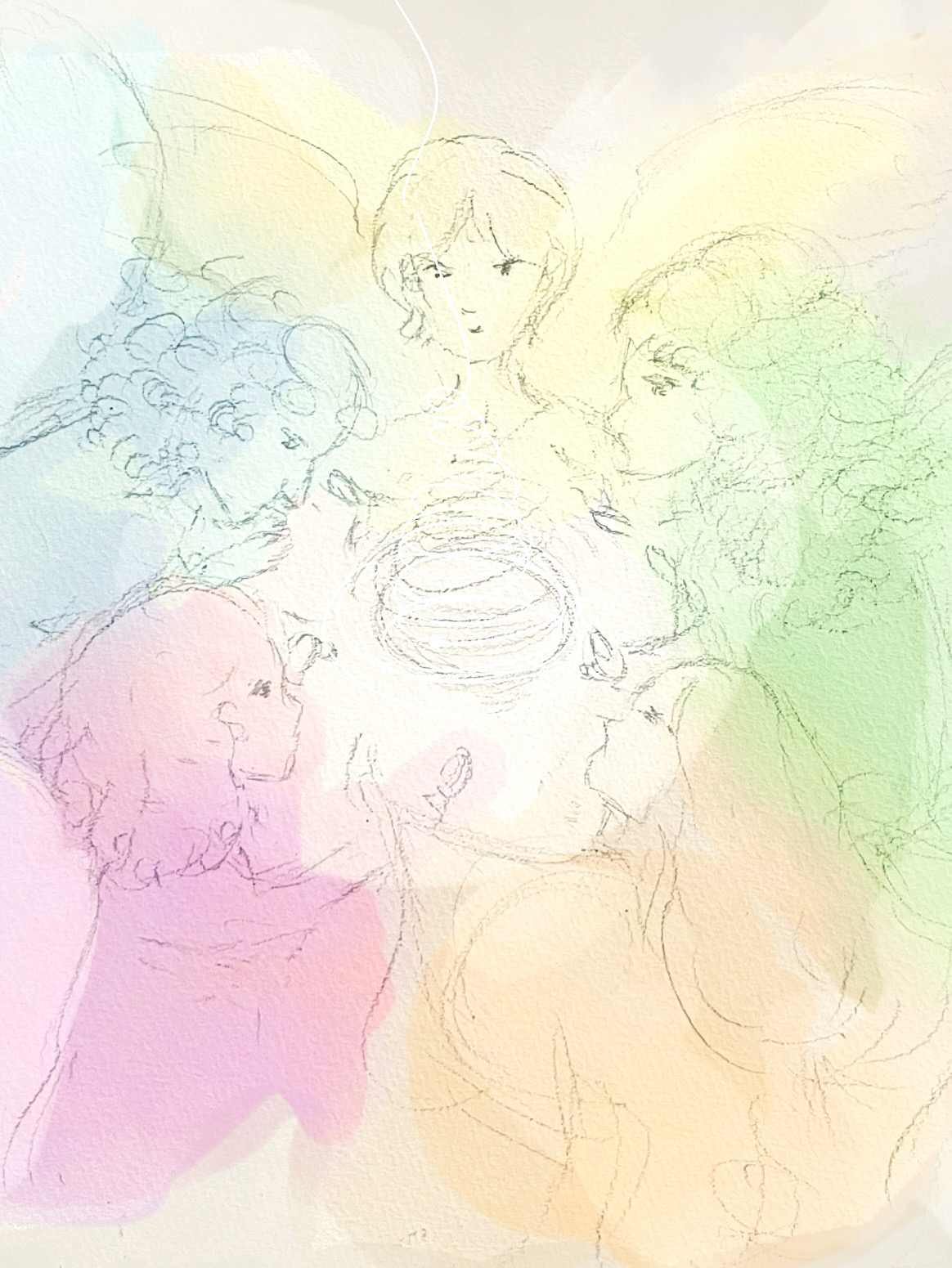 天使に囲まれていた頃の娘の姿を、彼女の話を聞きながら描き足してみました